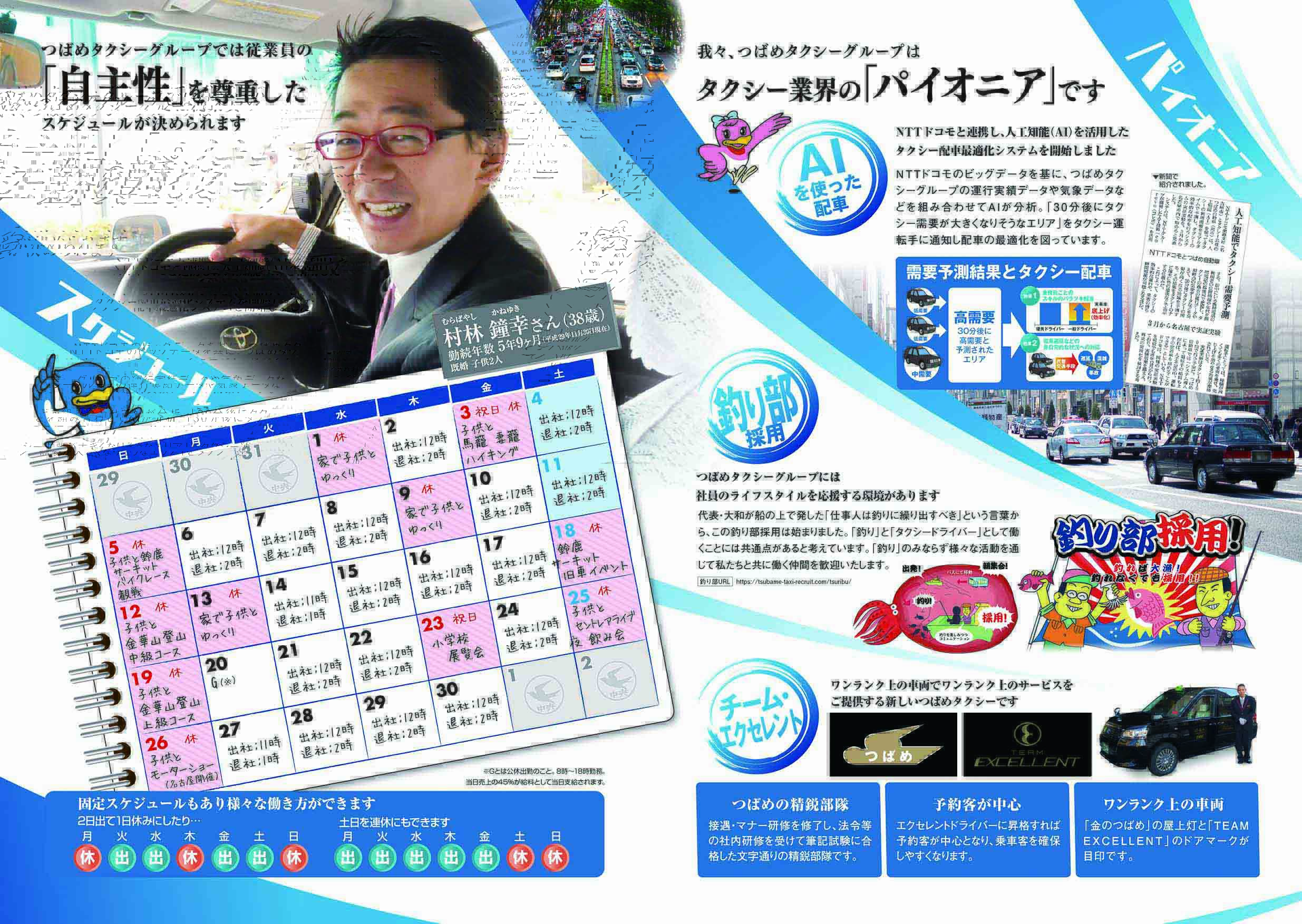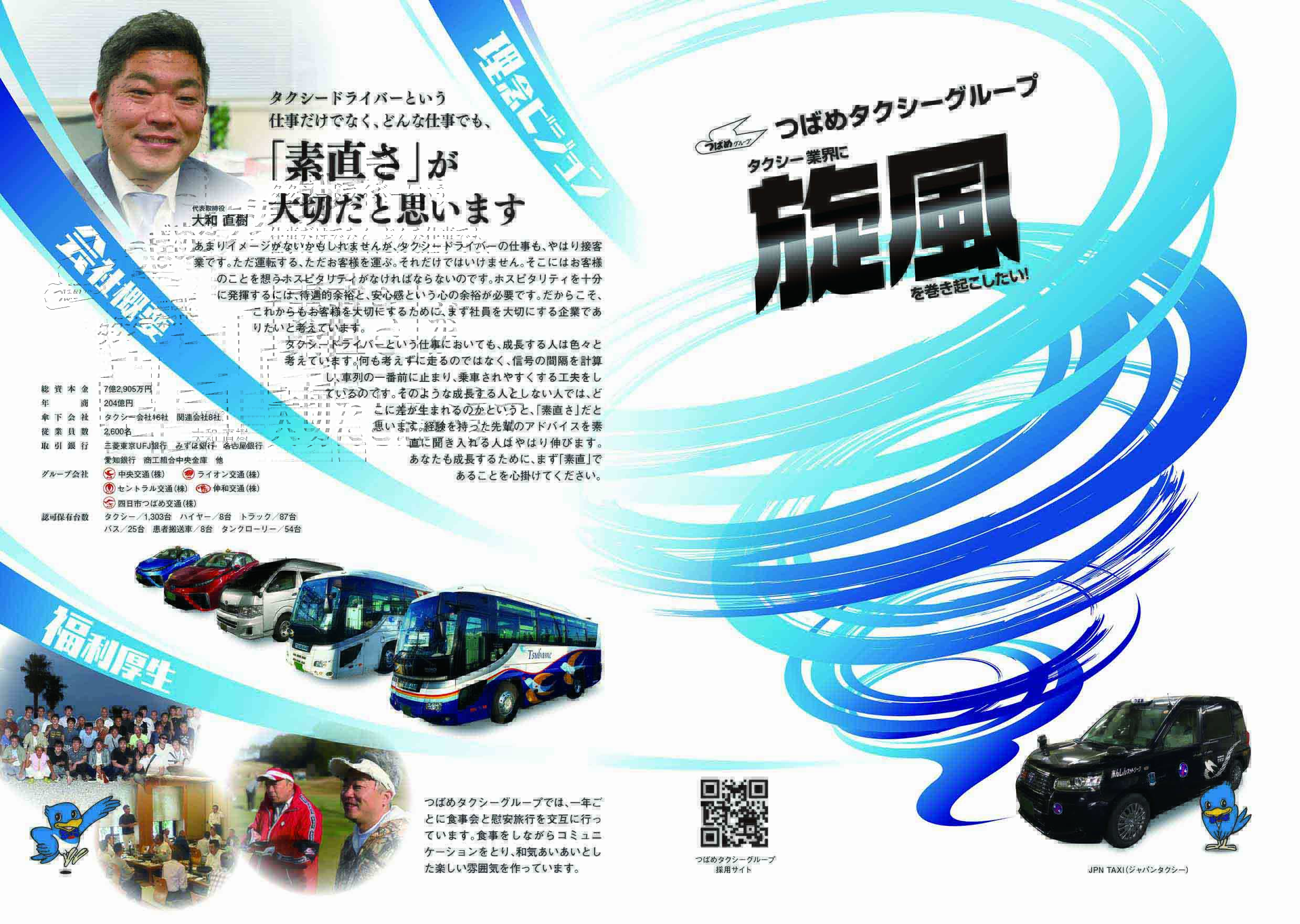 つばめタクシーグループの仕事や働き方を、現場のリアルな声とともに伝える採用パンフレットです。