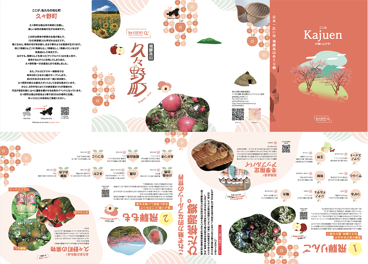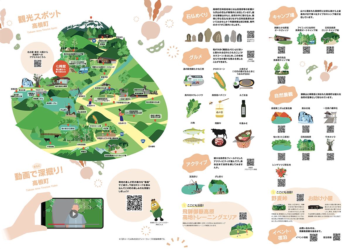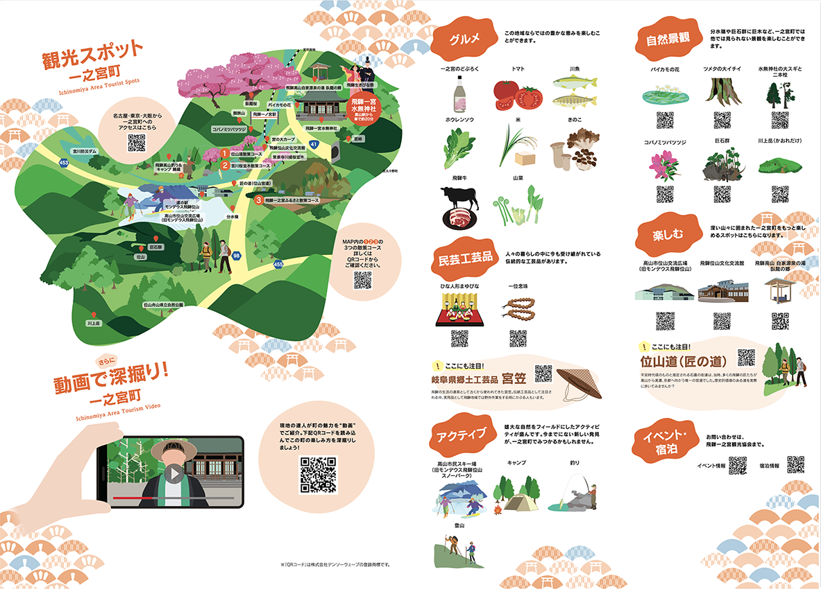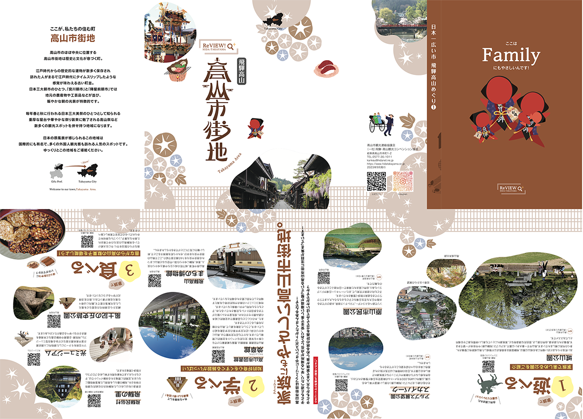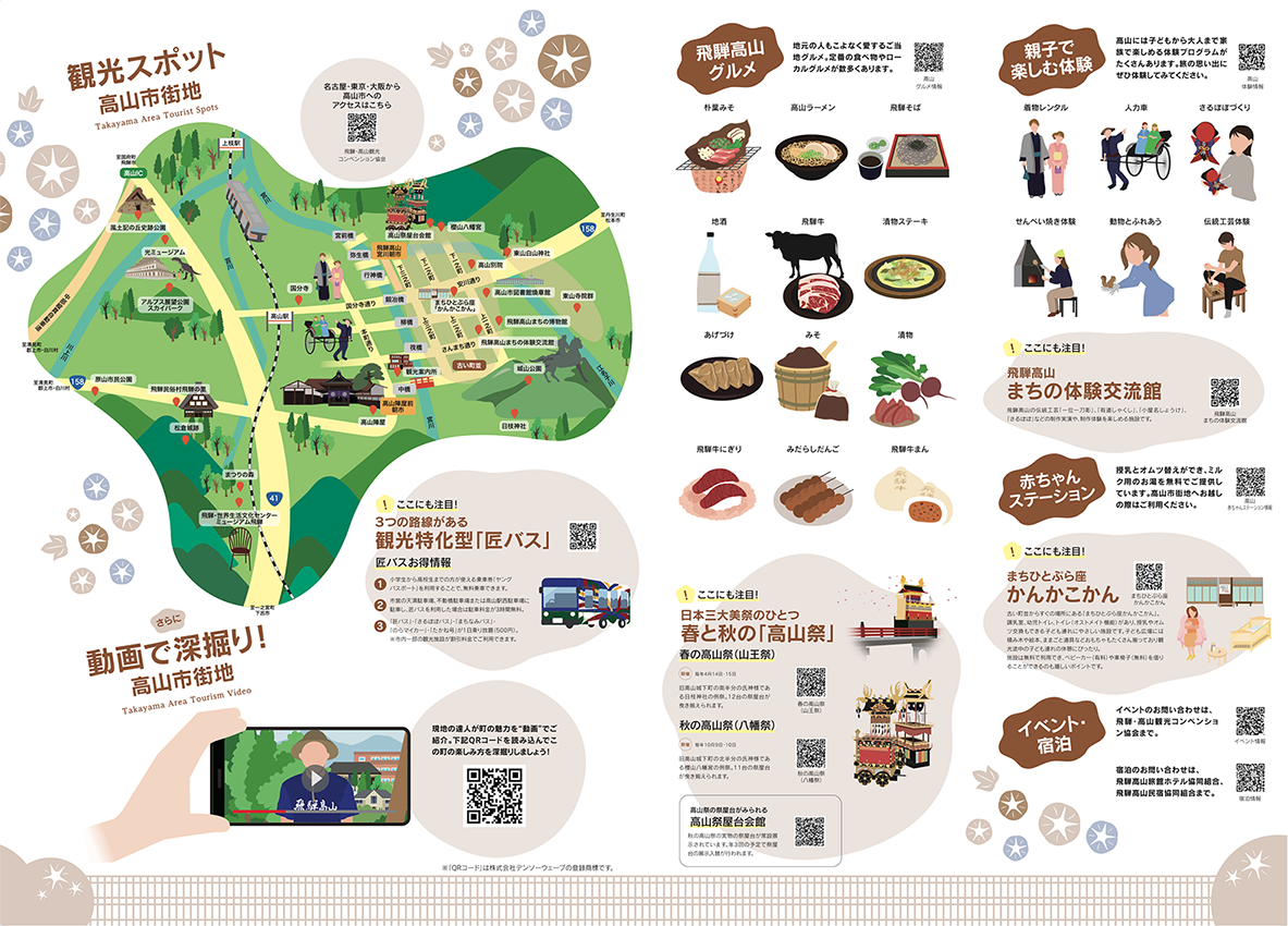 高山市は市域が広く、10の地域(高山市街、丹生川町、清見町、荘川町、一之宮町、久々野町、朝日町、高根町、国府町、奥飛騨温泉郷・上宝町)に分かれています。イラストと写真を組み合わせた温かみあるビジュアルで、観光客には新たな発見を、地域住民には「自分ごと」として誇れる視点を提供します。手に取りやすいサイズ感と直感的にわかる構成で、訪れる人々の旅のきっかけとなることを目指しました。