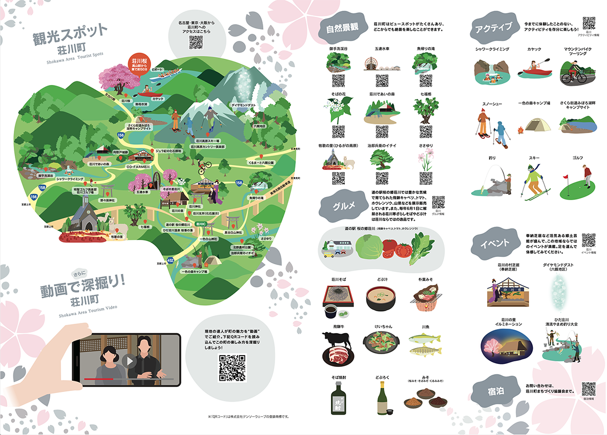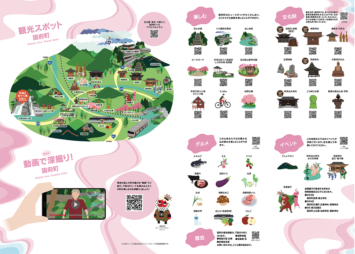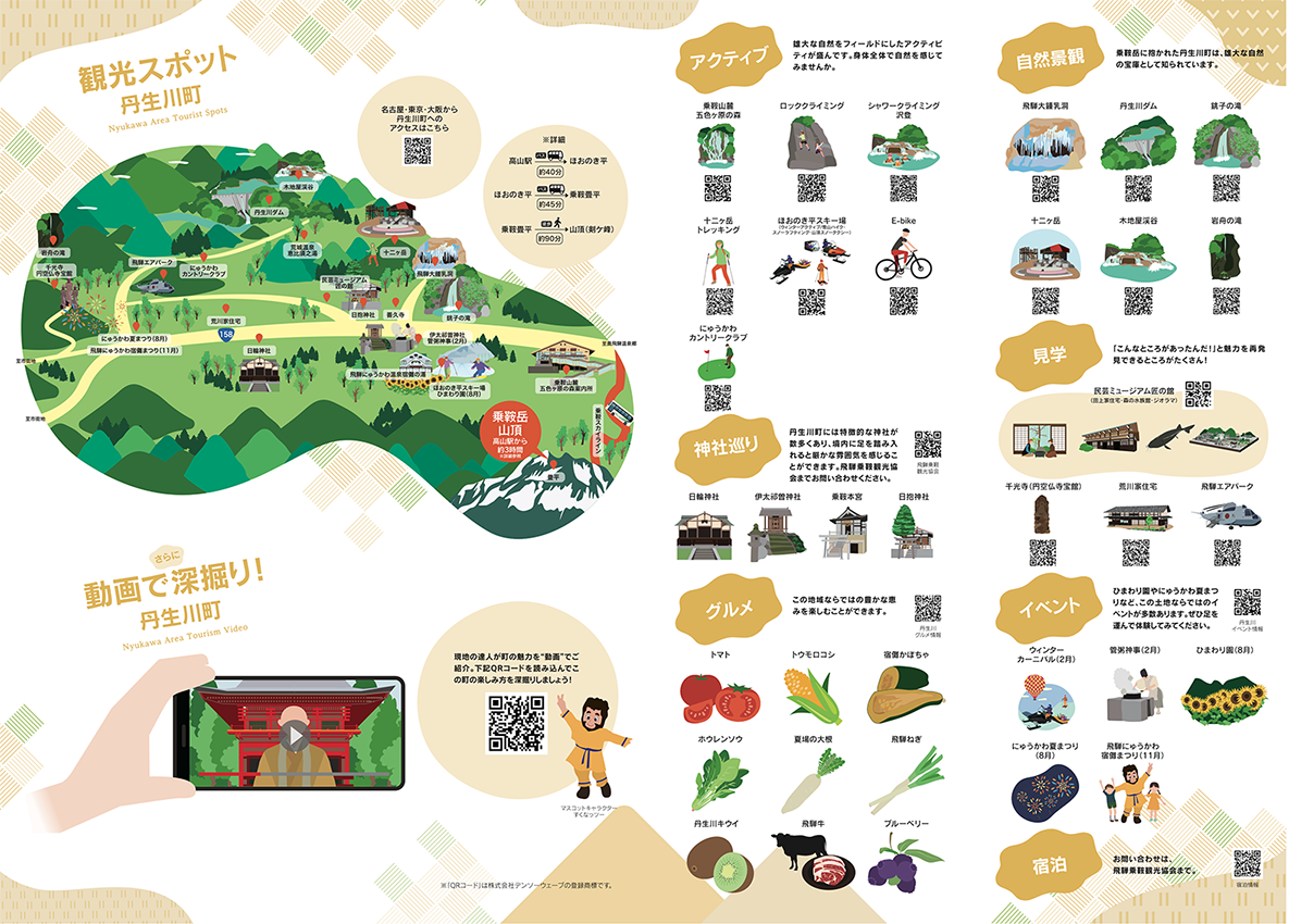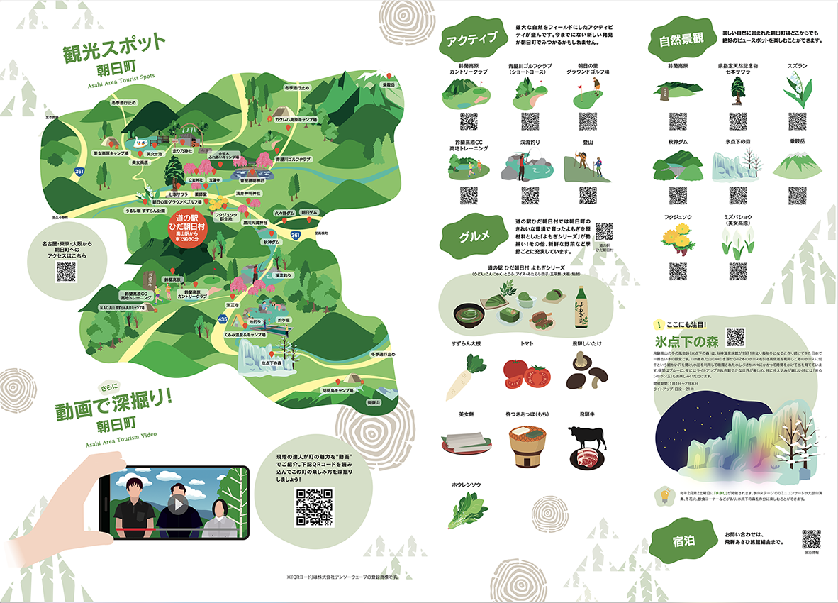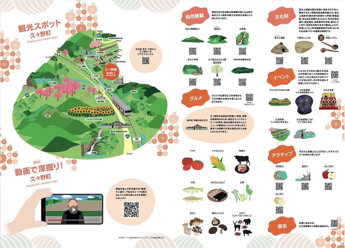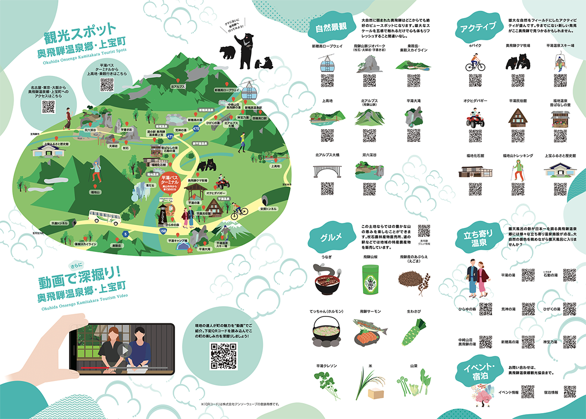 高山市は市域が広く、10の地域(高山市街、丹生川町、清見町、荘川町、一之宮町、久々野町、朝日町、高根町、国府町、奥飛騨温泉郷・上宝町)に分かれています。イラストと写真を組み合わせた温かみあるビジュアルで、観光客には新たな発見を、地域住民には「自分ごと」として誇れる視点を提供します。手に取りやすいサイズ感と直感的にわかる構成で、訪れる人々の旅のきっかけとなることを目指しました。