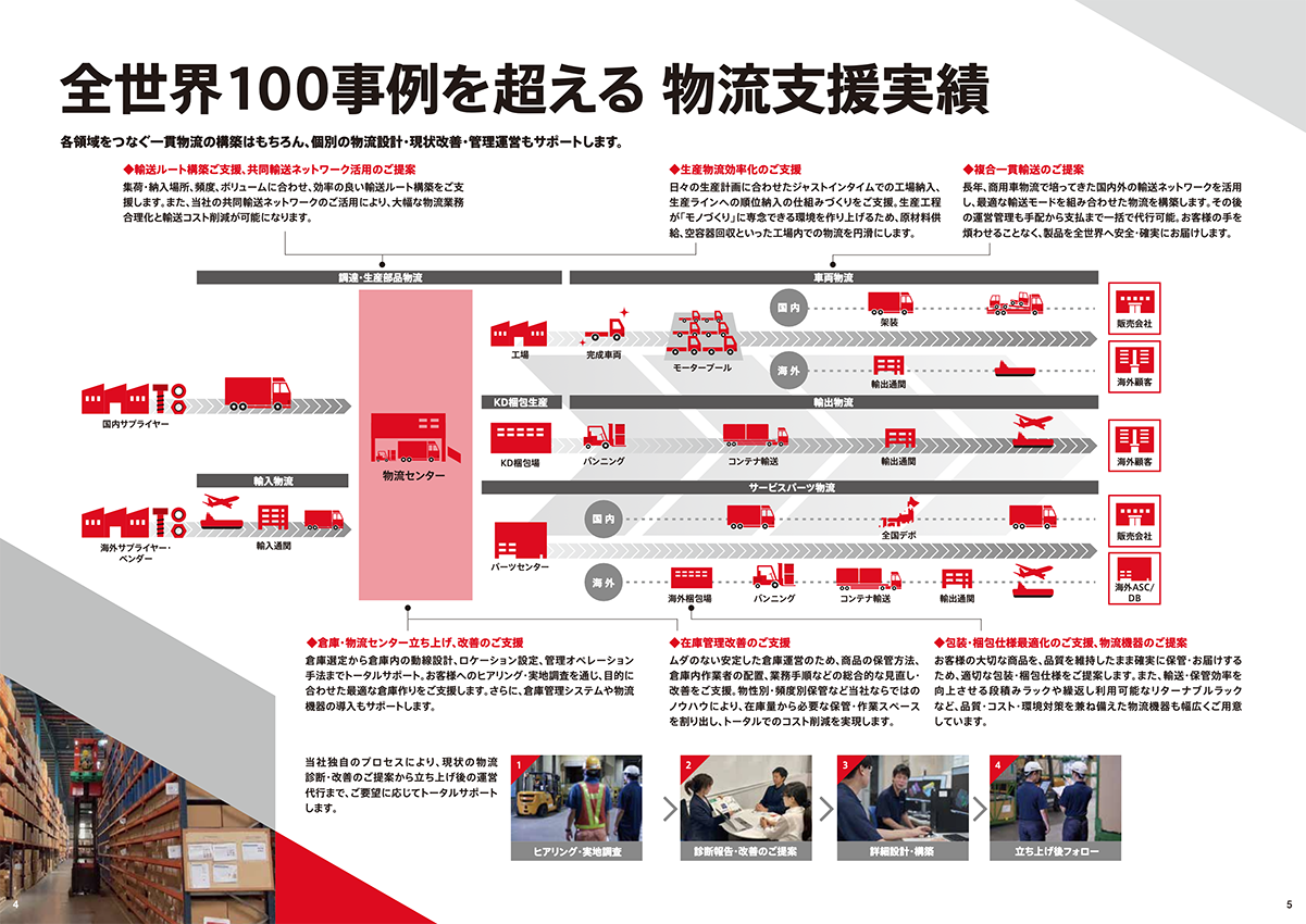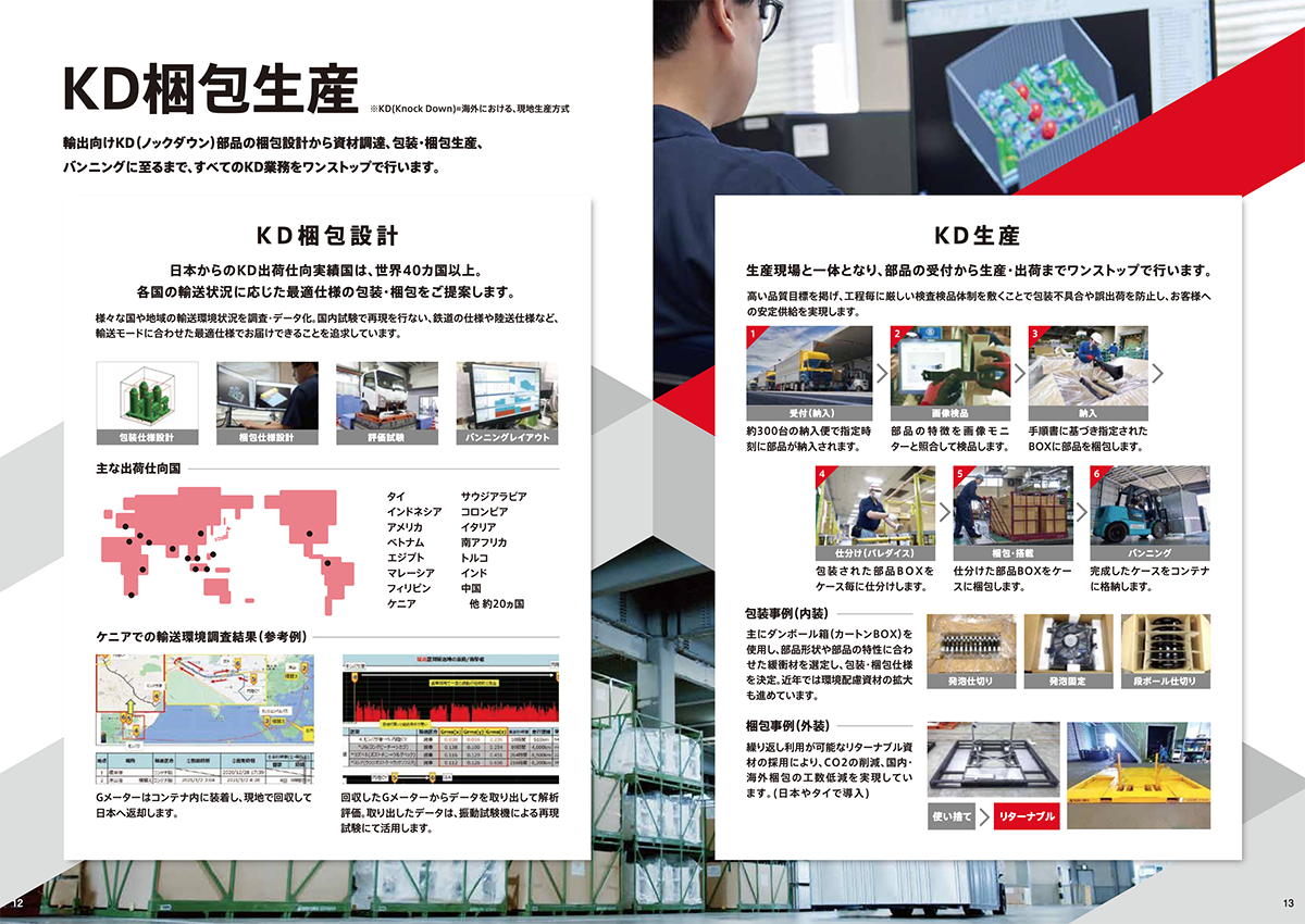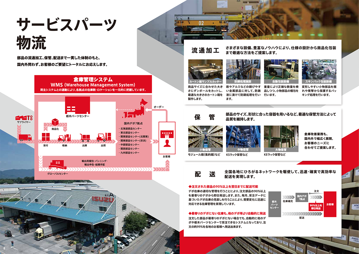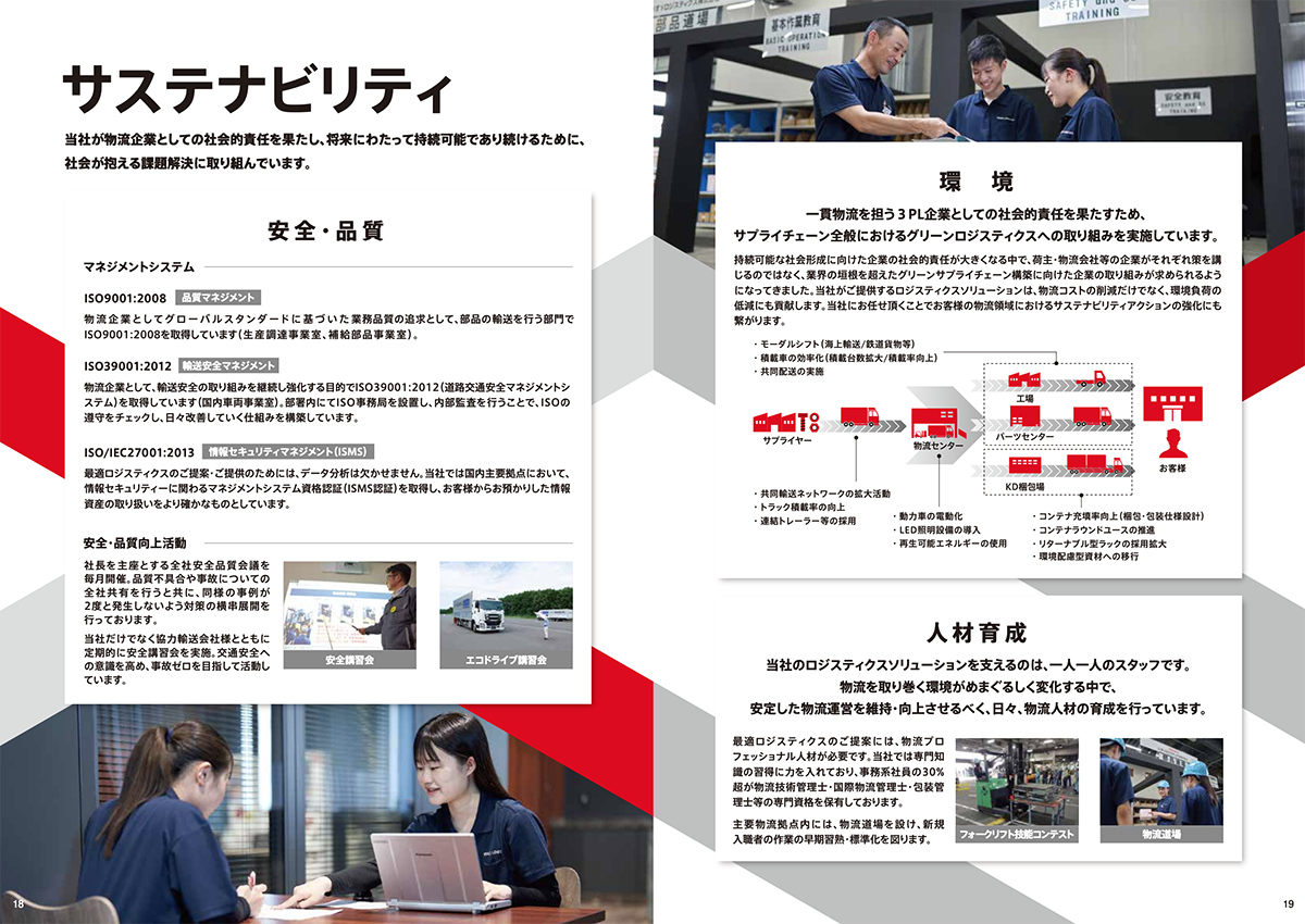 いすゞロジスティクス株式会社の事業内容・強み・実績を、国内外の顧客やパートナーに向けて分かりやすく伝える会社案内です。調達・生産部品物流、サービスパーツ物流、車両物流、輸出入物流、KD梱包生産など、複合一貫物流を軸とした幅広い物流サービスを体系的に整理し、グローバルに展開するネットワークと豊富な実績をビジュアルと図解で紹介しています。