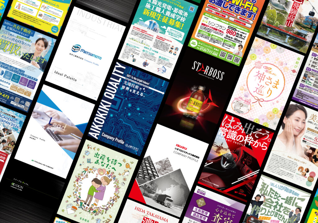 会社案内・パンフ・チラシ・ポスター・名刺・パッケージ/入稿データまで一貫対応。